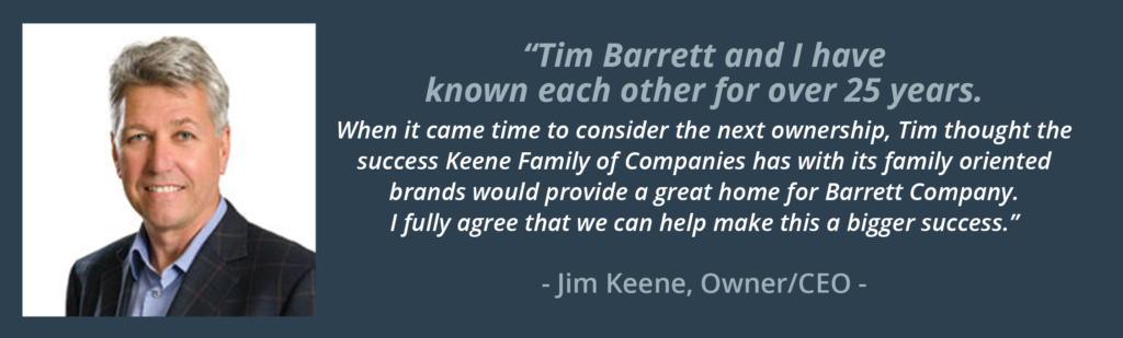 Cleveland, Ohio—August 22, 2019 –Keene Family of Companies announces an addition to its portfolio. Barrett Company has been acquired and will join Keene Family of Companies: Keene Building Products, Dependable, LLC, Continental Products, Ltd and Keene Village Plastics.