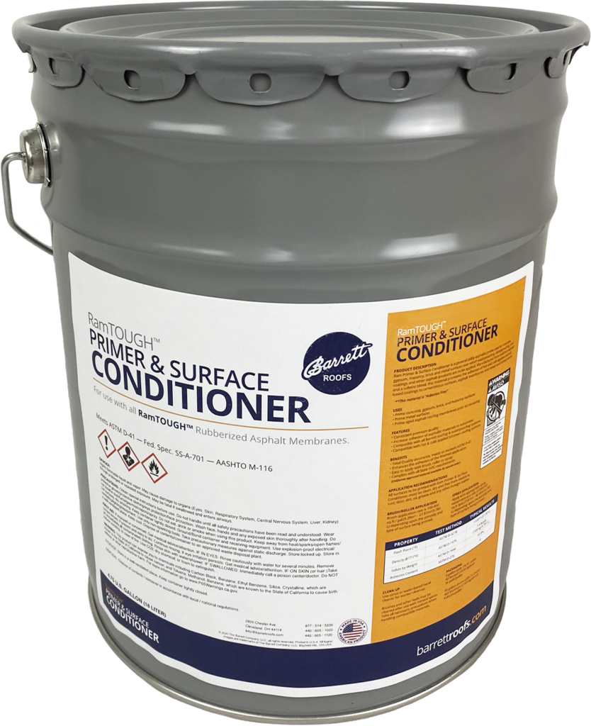 Ram Primer & Surface Conditioner is a general utility asphaltic prime coat for both porous and non-porous surfaces in the application of RamTough 250 and/or RamTough KLB-100.