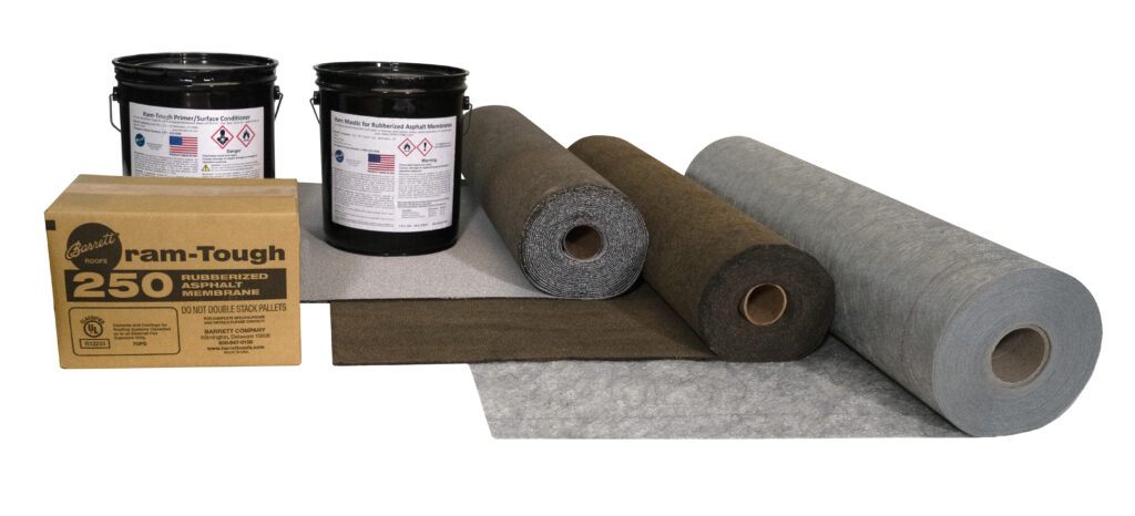 A thermoplastic material, RamTough 250 Bitumen is a 100% solid polymer-modified rubberized bitumen which forms a completely monolithic, waterproof barrier without seams or joints.