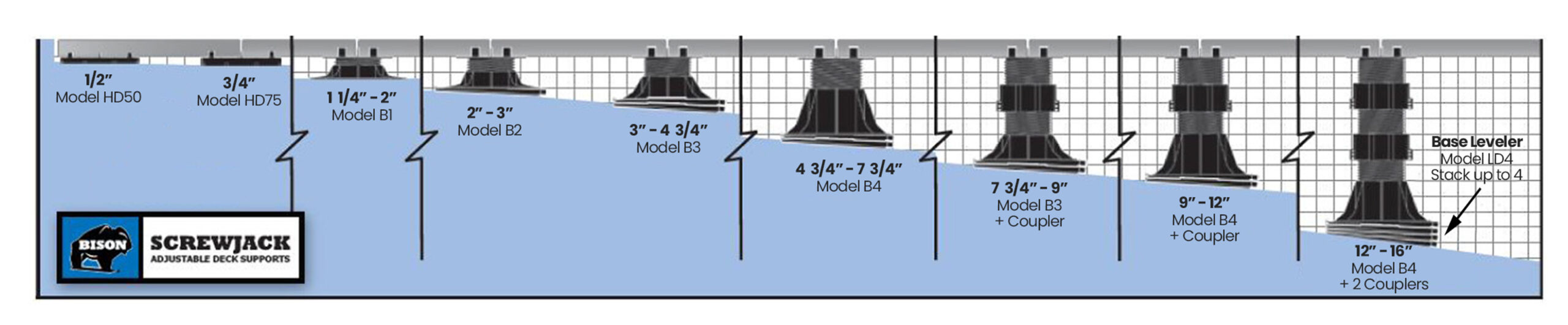 – Maximum elevation to 24” using couplers