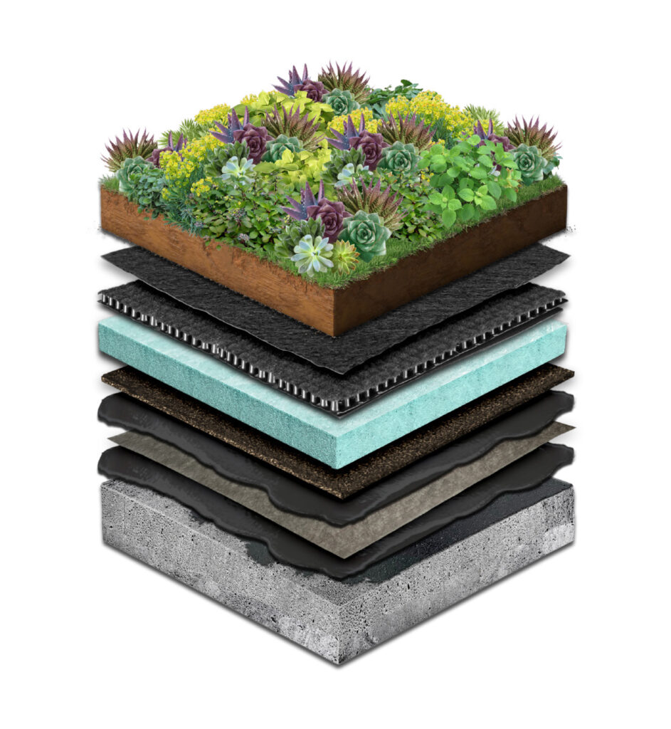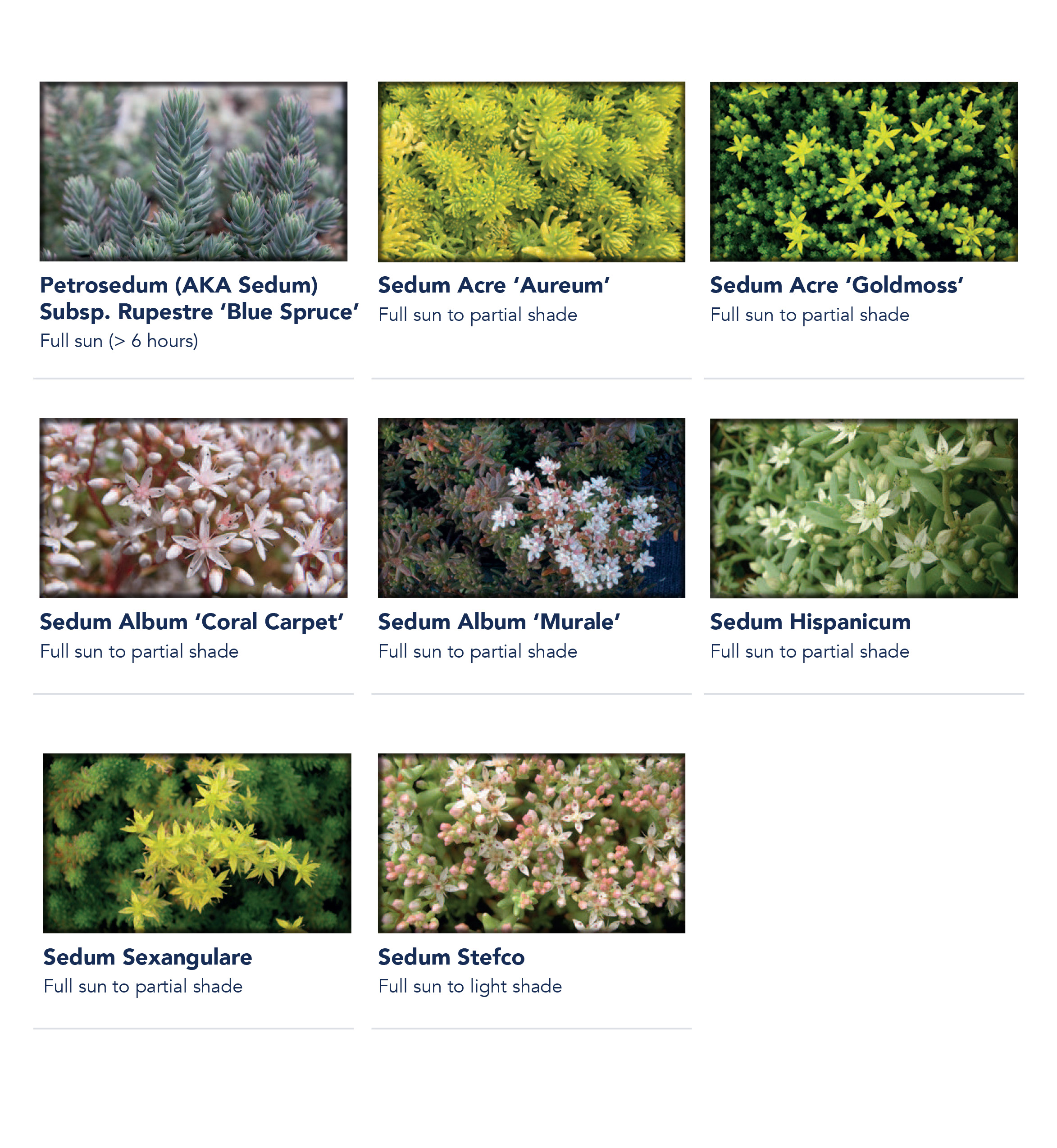 The Standard Sedum-mix blanket contains 12 to 16 different types of Sedum. The plants grow in a mineral based substrate layer on a biodegradable coconut fibre carrier. Sedum is a succulent plant that is well able to store water in its leaves and therefore grows perfectly under diverse weather conditions. Barrett’s Greenroof-Roofscapes® vegetation blankets are produced in accordance with FLL guidelines and ANSI-SPRI compliant.