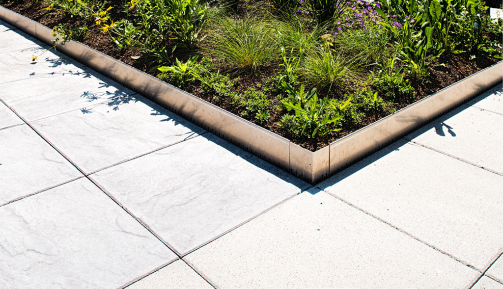 Roofscape® Edge is designed as a definite boundary between gravel/paver and growth media for semi-intensive vegetated roofs that allows the flow of water but not of the substrate.