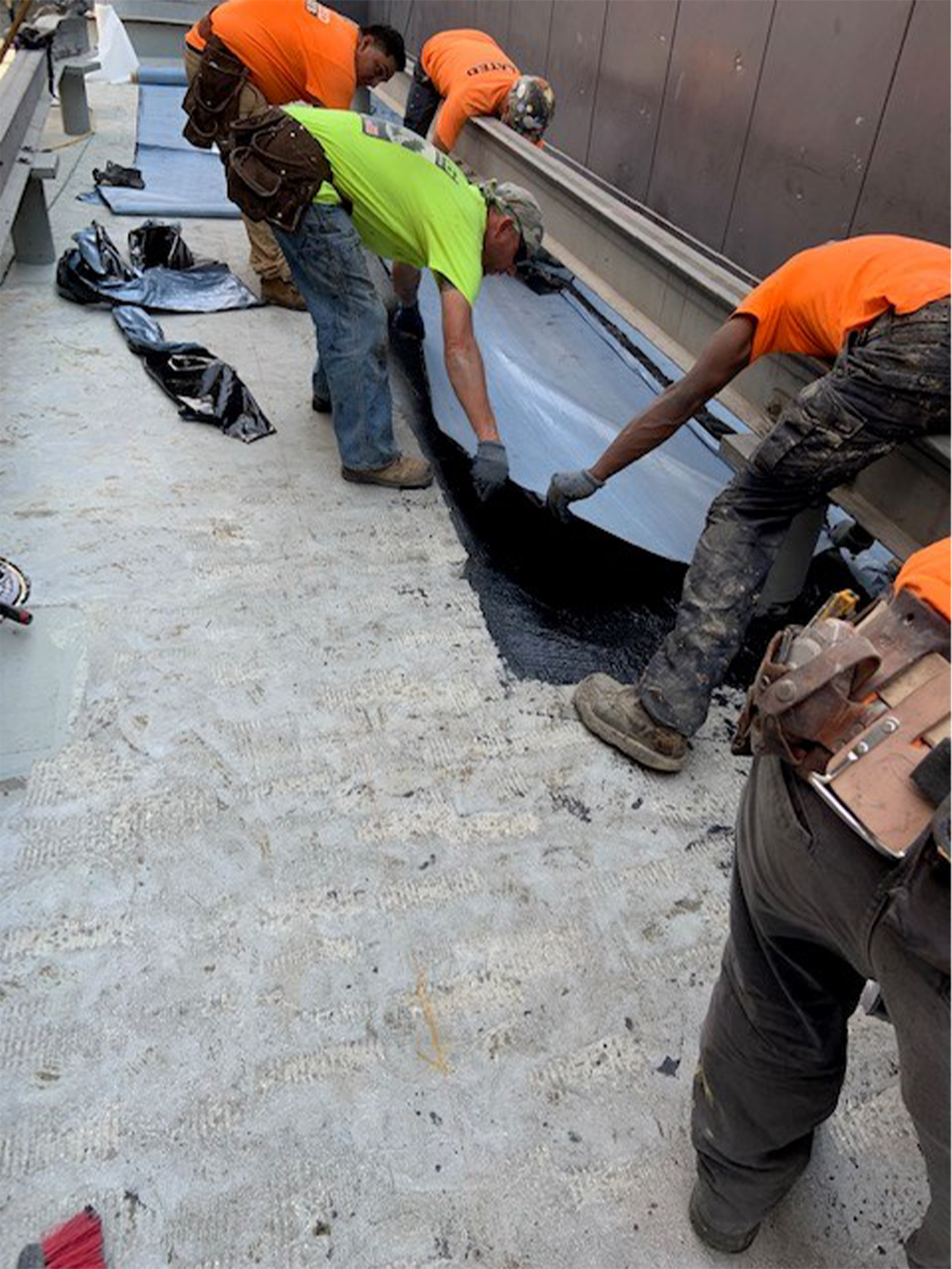 Proudly made in the USA, Barrett’s cold applied Black Pearl® asphaltic systems offer guaranteed protection for a number of different roofing & waterproofing applications. In this instance, the building utilized our Black Pearl® Protected Membrane Roofing System.