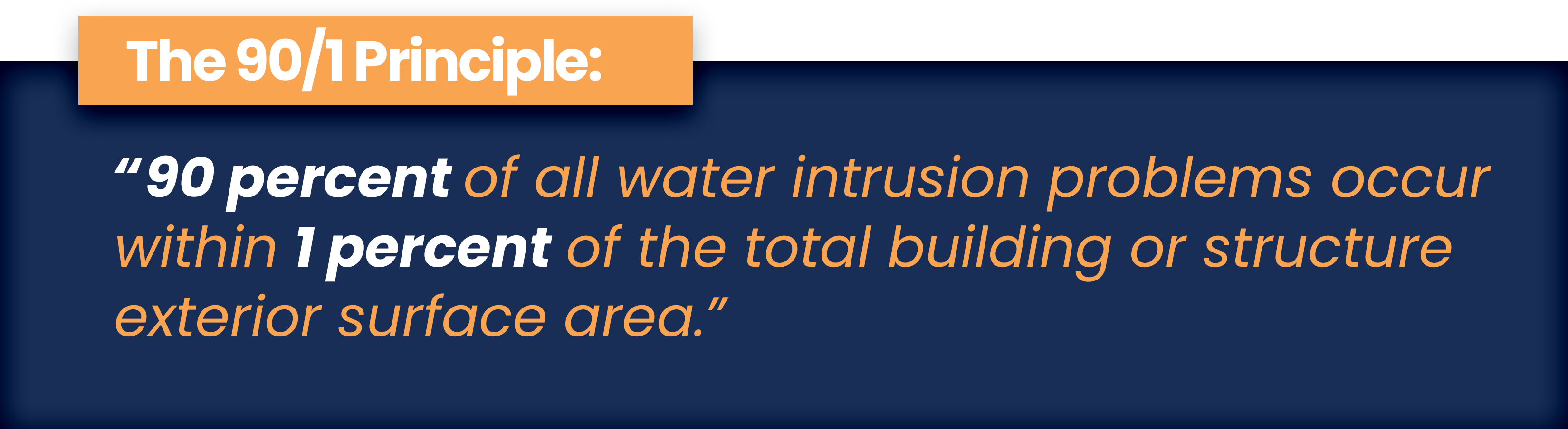 The 90%/1% principle is the reason that despite continuing technological advances, waterproofing continues to be one of the major causes of legal claims in the design and construction profession. It is not the actual manufactured waterproofing systems or envelope components that leak but the field construction details involving terminations and transitions.