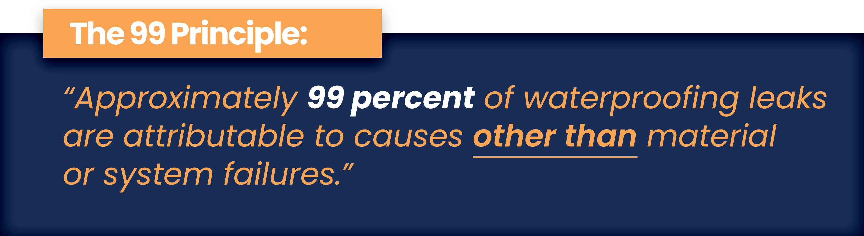 When considering the millions of square feet of waterproofing systems installed, both barrier and drainage systems, and miles of sealant involved in building envelopes, it can be estimated that only 1 percent of envelope failures and resulting leakage is actually attributable to materials or systems actually failing.